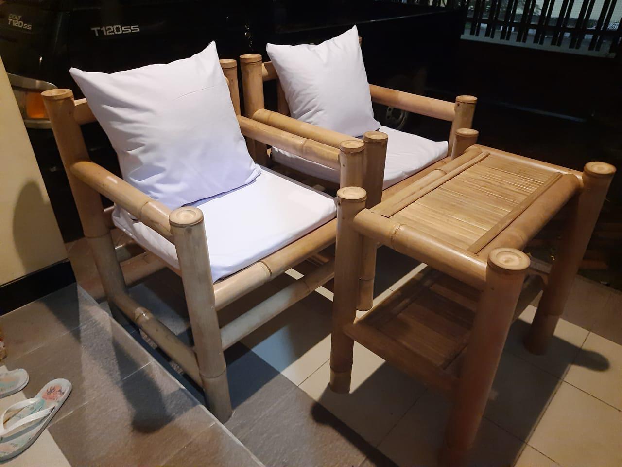 הסט כולל 2 כיסאות במבוק במידה 50*50 ושולחן במידה 58*45*50